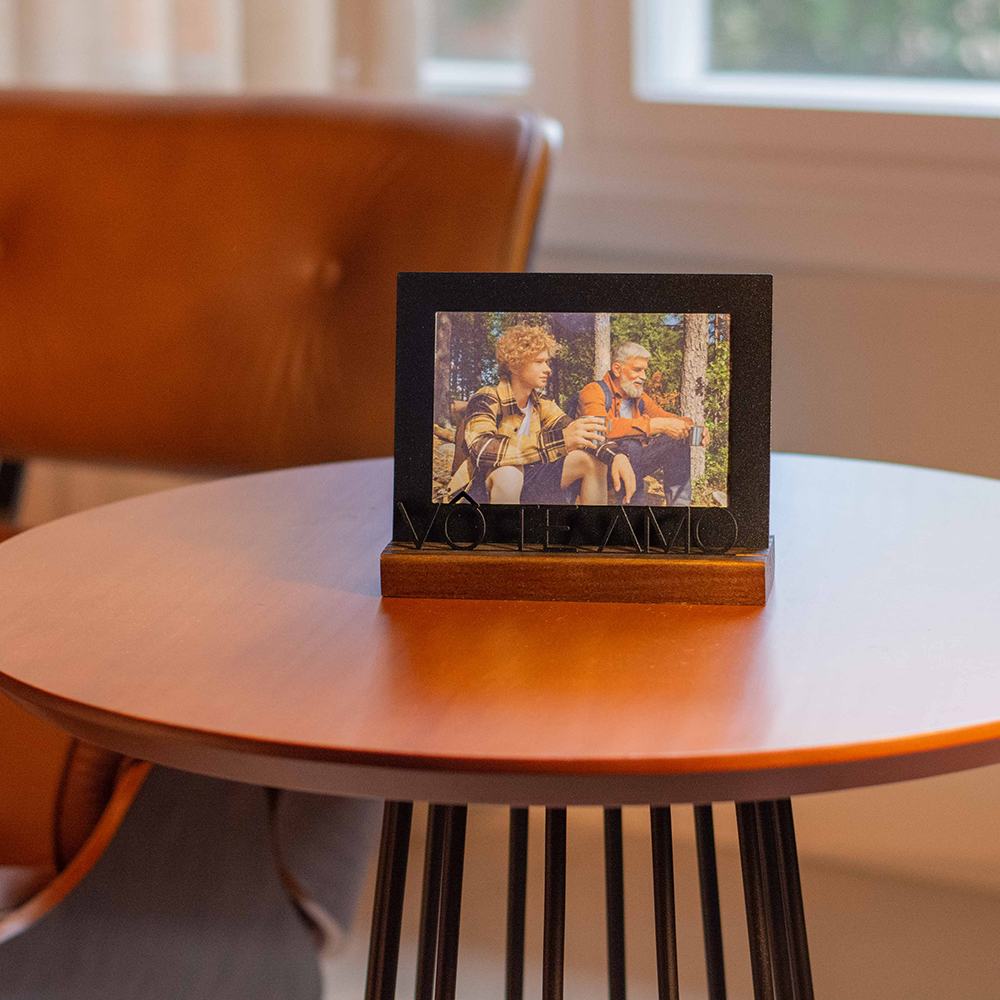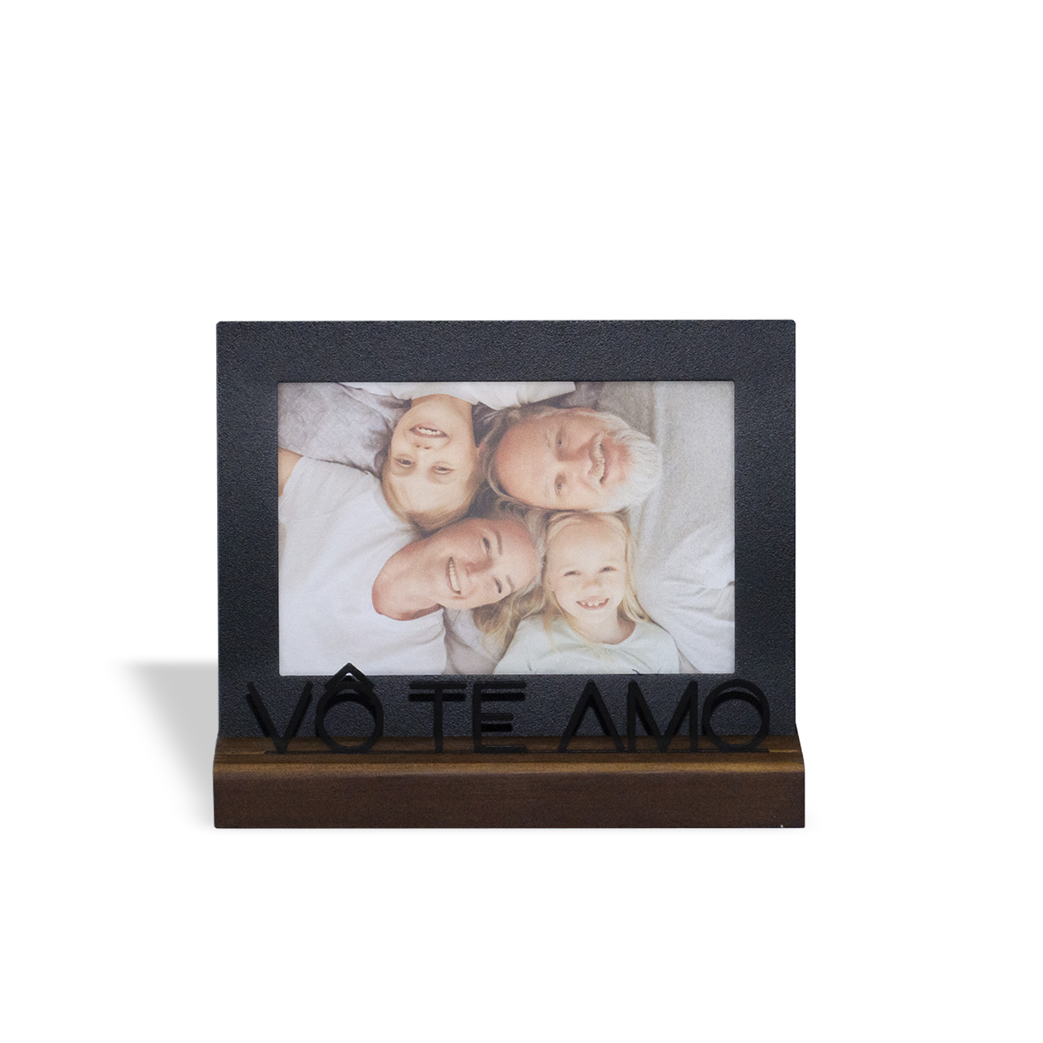 Vô te amo. Para eternizar momentos, homenagear e decorar. Para foto 10x15cm na posição horizontal ou vertical. Produto de aço, acrílico e madeira certificada de reflorestamento fabricado no Brasil. A coleção Amor é inspirada nesse sentimento afetivo que faz com que uma pessoa queira o bem de outra. Faça a diferença compartilhando o amor: cuide, respeite, encante, supreenda, presenteie e ame. Presente para os vovôs.
